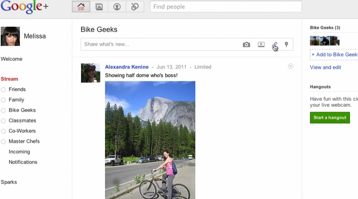 Look und Feel erinnern stark an Facebook, oberstes Element ist die Share-Leiste, mit der man wie bei Facebook Statusnachrichten, Fotos, Videos und Links teilen kann. Doch wer was zu lesen bekommt, ist komplett neu strukturiert: Es gibt keine Freundeslisten mehr, sondern +Circles. Das sind die verschiedenen Freundes-, Kollegen- und Bekanntenkreise, zu denen man gehört - und die dann auch nur spezifische Infos zu sehen bekommen.