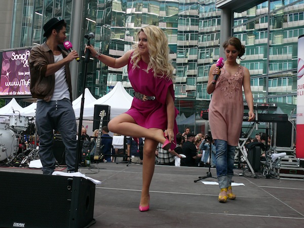 Gestern fand in Berlin das Fantreffen von "Anna und die Liebe" statt. Die Fans erwartete nicht nur eine Autogrammstunde, sowie die Vorführung einer Highlight-Folge, sondern auch eine Performance von Hauptdarstellerin Jeanette Biedermann (30). Die stürmte die Bühne und performte Lieder aus ihrer bisherigen Musik-Karriere. Als Überraschung gab es dann die Premiere ihres neuen Songs. Um sich besser bewegen zu können, musste die Sängerin allerdings kurz pausieren, um ihre hohen Schuhe auszuziehen, denn die waren offenbar sehr unbequem. Jeanette sagte zu den Fans: "Ich kippe andauernd aus den Latschen!". Kaum war sie diese los, konnte es mit der Show weitergehen und Jeanette rockte zur Freude der Fans die Bühne. Auch auf eine Zugabe musste man nicht verzichten.